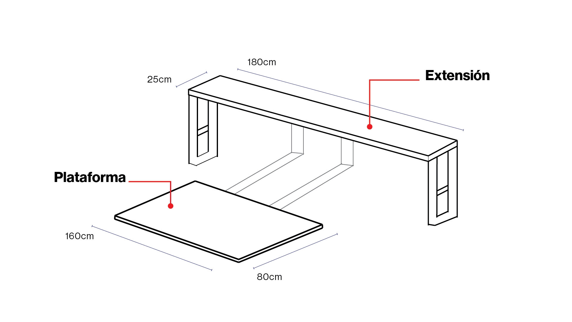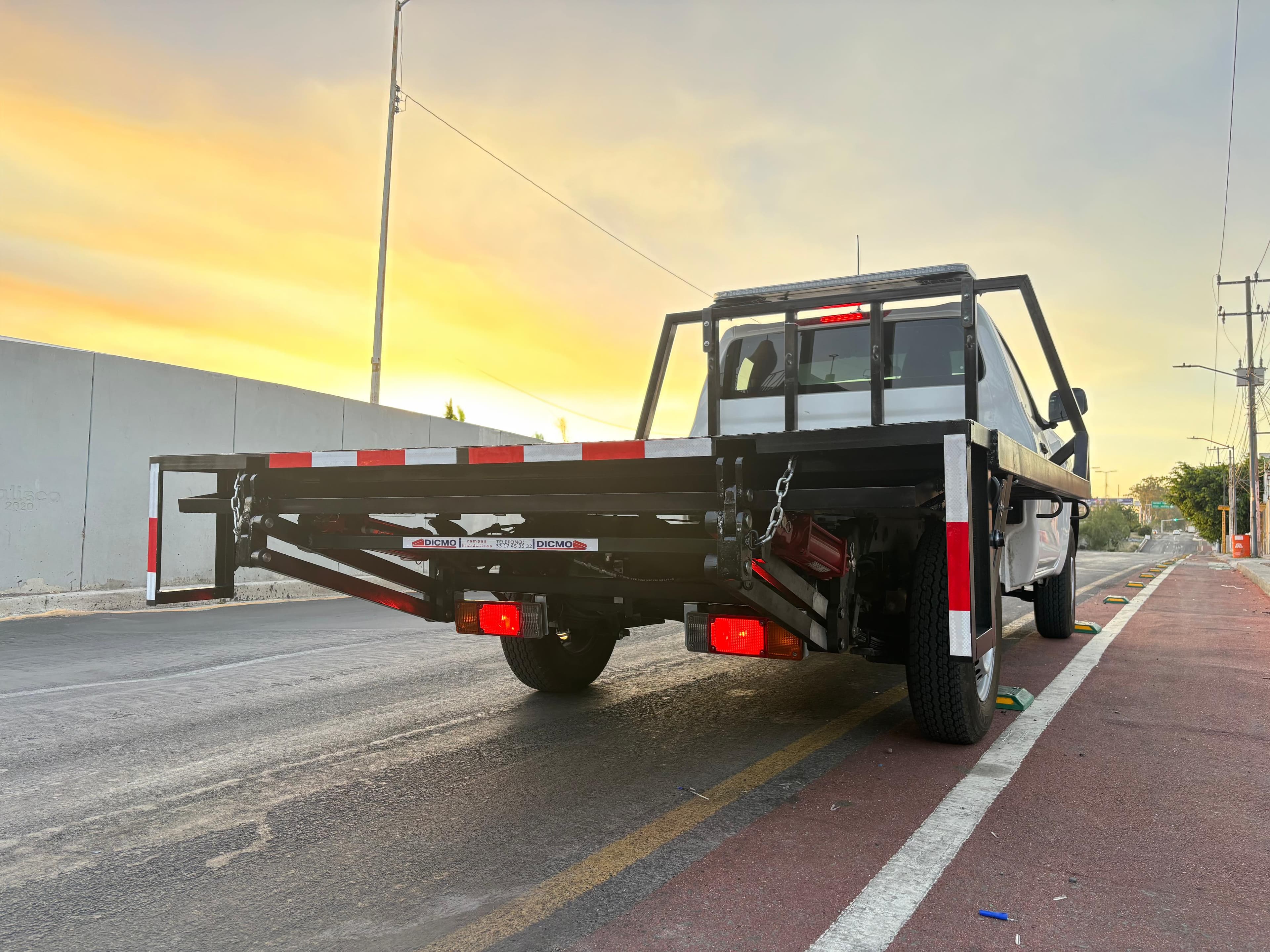Diseñada con un motor hidráulico con pistones de fuerza y una extensión de piso que se coloca en la camioneta para poder transportar la carga de la plataforma a la caja de la camioneta.